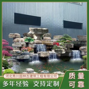 酒店办公楼客厅风水真石假山 千层石 庭院设计施工